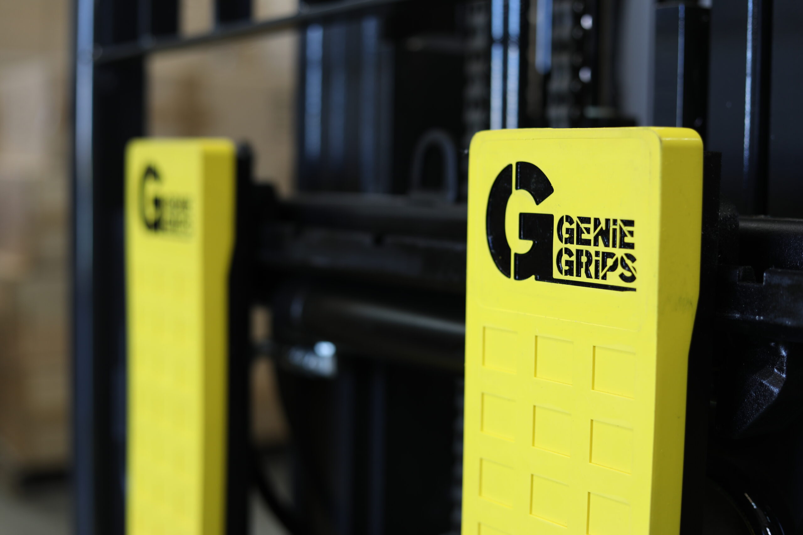 The GenieGrips® Cushions eliminate friction and absorb impact of goods that may occur during lifting, loading and placing of loads. They are extremely easy to fit, with powerful magnets securing them on the forklift tine carriage. GenieGrips® Cushions are specifically designed to be paired with our GenieGrips® Mats, GenieGrips® Stik-It Pads or GenieGrips® Caps to provide full forklift tine protection!