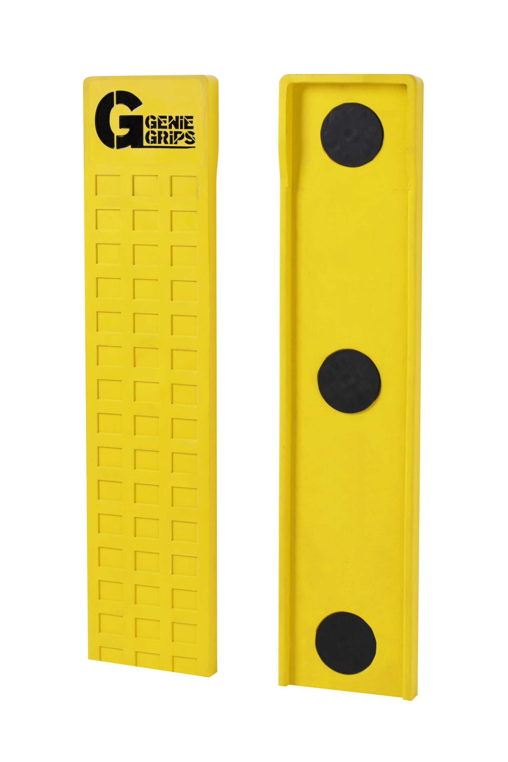 The GenieGrips® Cushions eliminate friction and absorb impact of goods that may occur during lifting, loading and placing of loads. They are extremely easy to fit, with powerful magnets securing them on the forklift tine carriage. GenieGrips® Cushions are specifically designed to be paired with our GenieGrips® Mats, GenieGrips® Stik-It Pads or GenieGrips® Caps to provide full forklift tine protection!