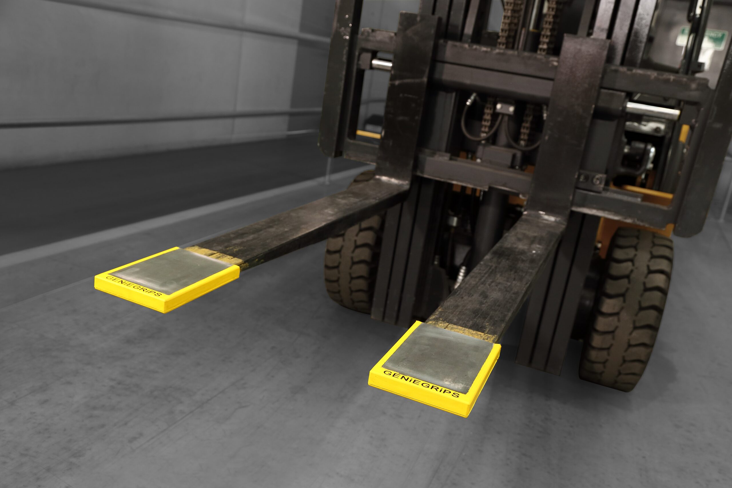 Rather than covering the entire tyne with our GenieGrips® Mats, these products function as a Cap that sits on the tip, preventing the tyne from causing harm to your merchandise during lifting. Easy to fit and remove, they provide an effective way of minimising instances of damage to products, as well as to the forklift itself. Constructed from bright, high visibility yellow compound rubber, our Caps are easy to see during the day or night, ensuring safety to workers at all times. They also feature a reinforced steel frame for greater longevity.